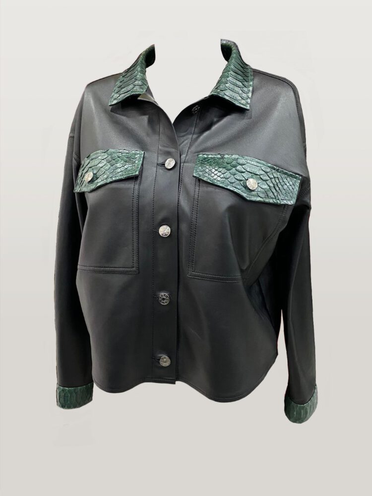 This pilot jacket is made of high quality Python. Due to the two flap pockets, the golden Zip and the satin lining, this jacket is getting a very exclusive Look.